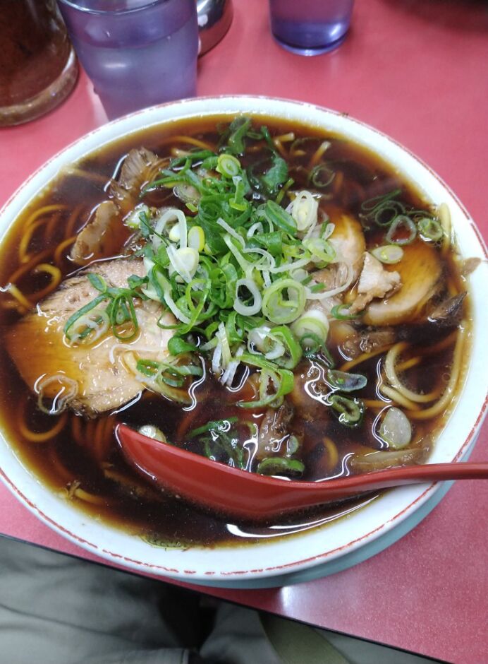 ちょっと太めの麺でね。やっぱりスープがおいしいなぁ。あとチャーシューがグッド。こういうチャーシューがええっすわ。